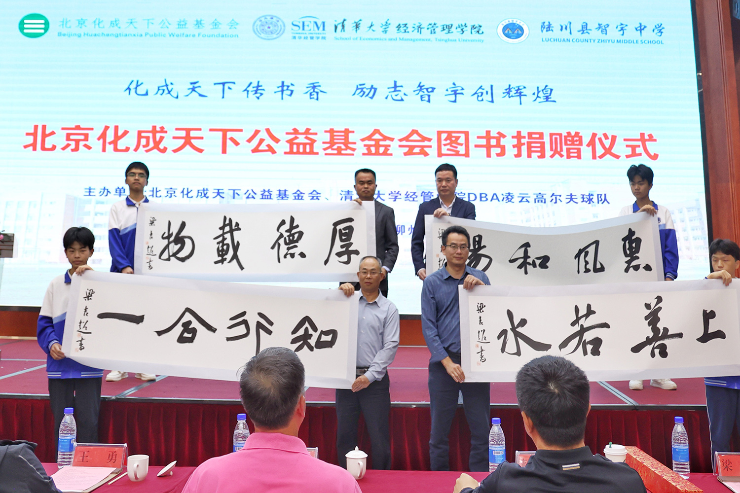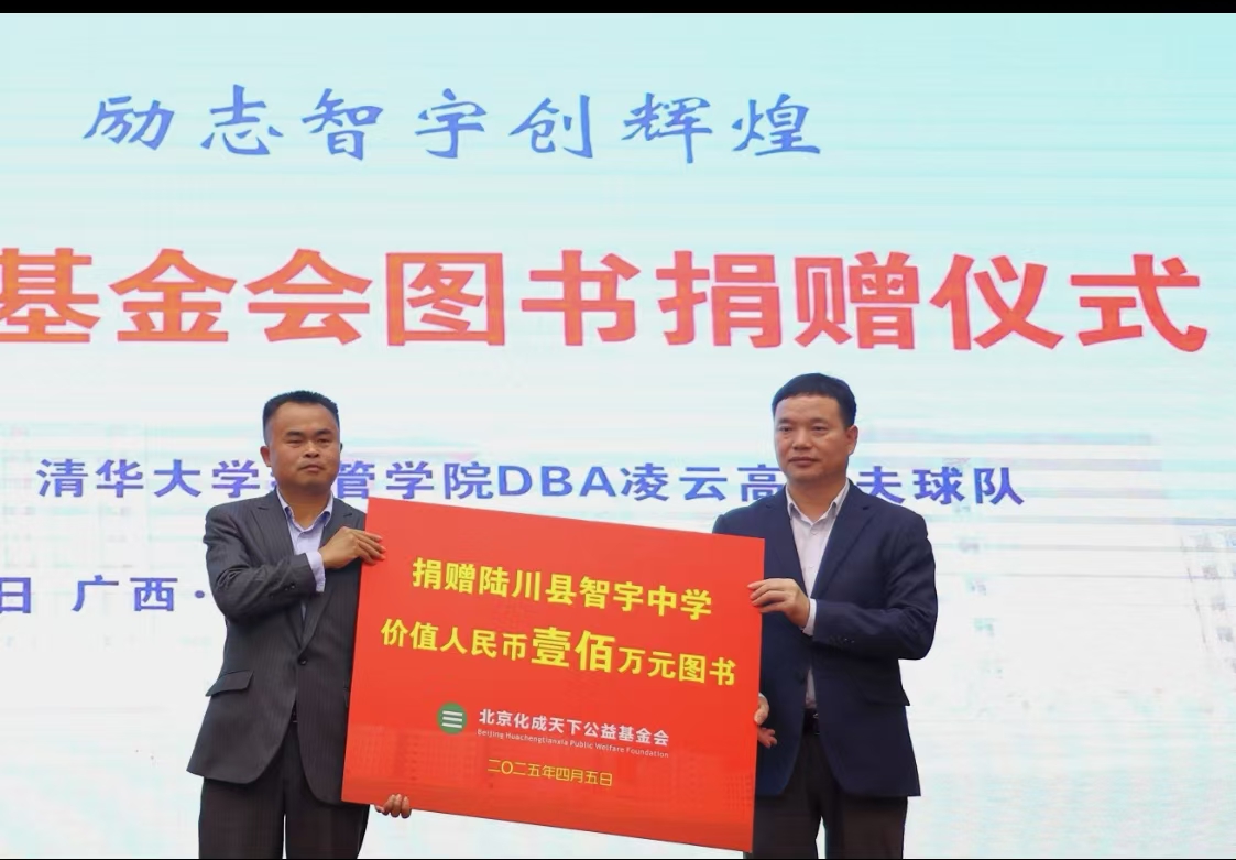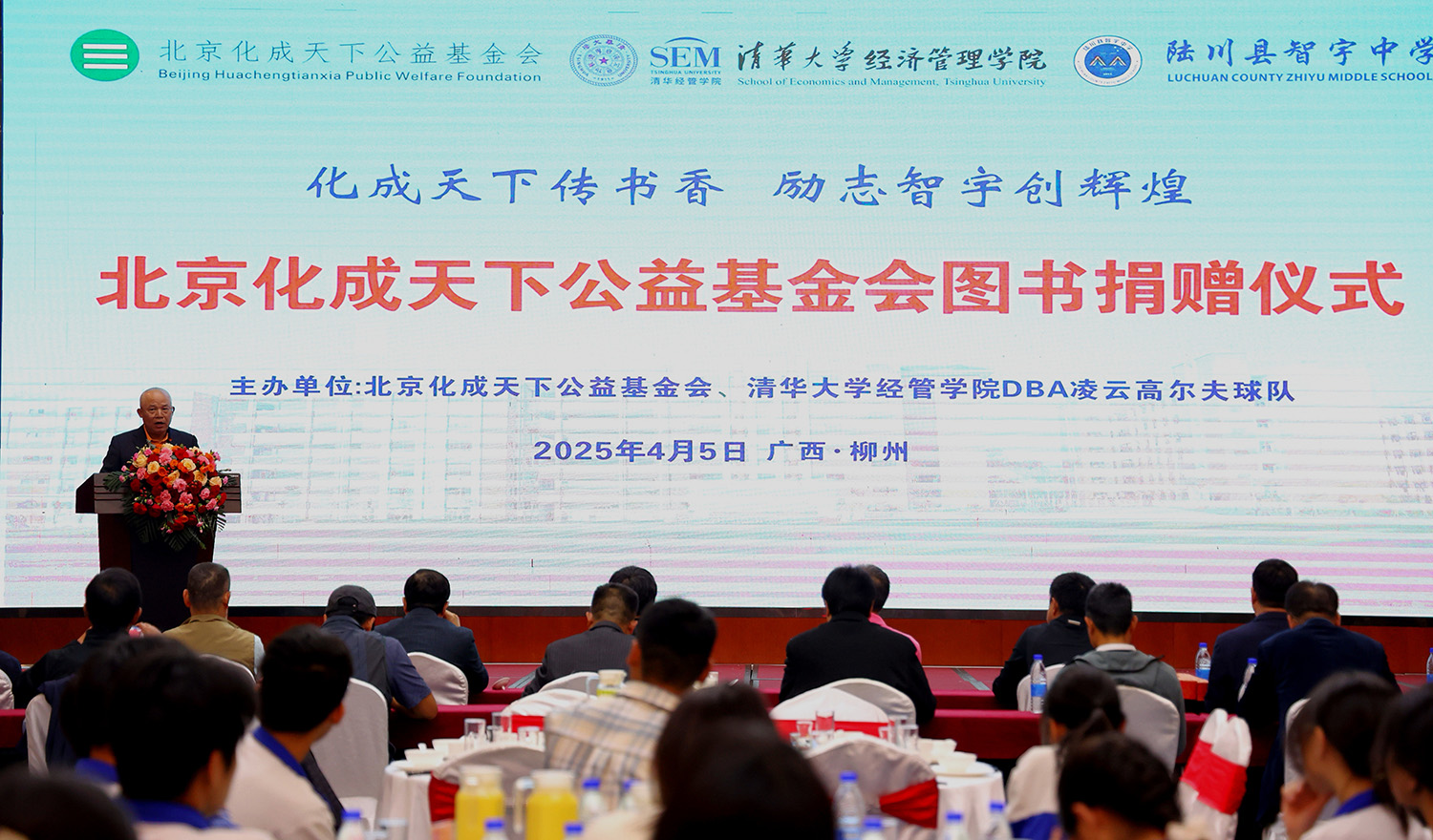 4月5日,北京化成天下公益基金会、清华经管DBA校友代表、北京兴源控股集团联合主办的“北京化成天下公益基金会图书捐赠仪式”在广西柳州圆满举行。北京兴源控股集团通过北京化成天下公益基金会向陆川县智宇中学捐赠了价值100万元图书。 柳州市人大常委会主任刘传林,北京化成天下公益基金会名誉理事长王家新,清华大学经管学院院长助理、博士生导师王勇,上海交通大学可持续发展研究中心主任、博士生导师黄建云,北京双杰电气股份有限公司董事长赵志宏,川海控股、启迪川海投资集团、陆川县智宇中学董事长吕贻标,北京化成天下公益基金会秘书长梁吉超,陆川智宇中学书记、校长吕伟斌、执行校长莫永林,以及清华经管DBA(管理学博士)校友14人、陆川县智宇中学师生代表等出席了此次公益捐赠活动。